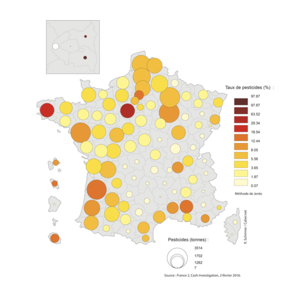 Zones de France où l’utilisation de pesticides est la plus importante.