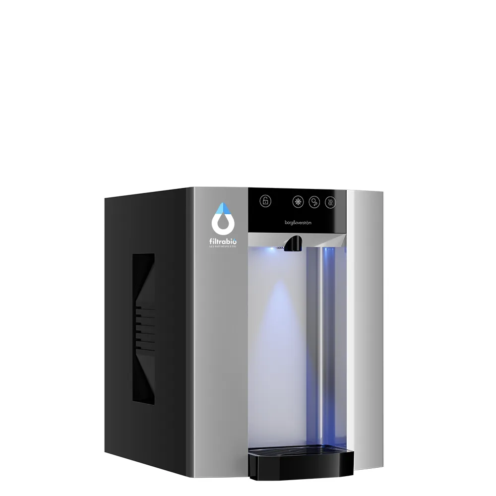 Le Purificateur Filtrabio est la solution idéale pour offrir une eau de qualité dans votre entreprise. Il peut purifier l’eau directement au robinet d’une salle de pause ou kitchenette, ou alimenter une fontaine, qu’elle soit déjà installée ou fournie par Filtrabio. Fournissant une eau zéro km, fraîche ou gazéifiée, le purificateur traite les principaux contaminants, tout en offrant une alternative durable et éco-responsable aux bouteilles d’eau, simplifiant ainsi la logistique et réduisant les déchets.